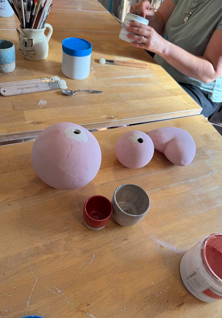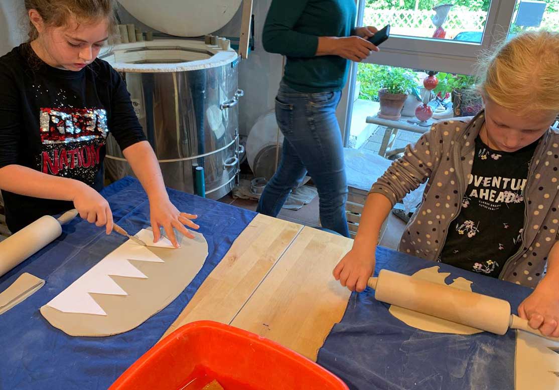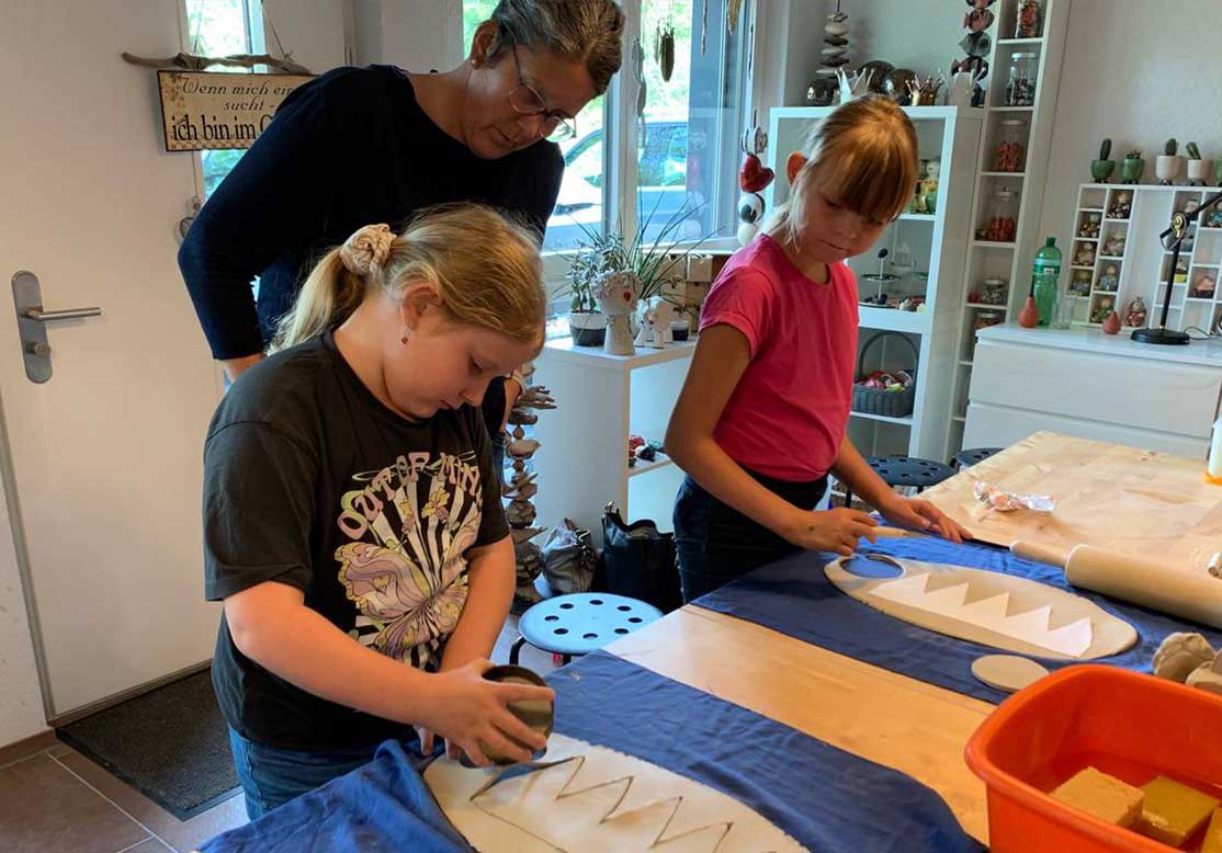 Im Frühling 21 fand dieser private Workshops in meinem Atelier statt. Zwei Mamis mit ihren Töchtern und Gottenmeitli haben an zwei Nachmittagen gemütlich zusammen geknetet, ausgerollt, geformt, geschlickert und bemalt was das Zeug hält😃