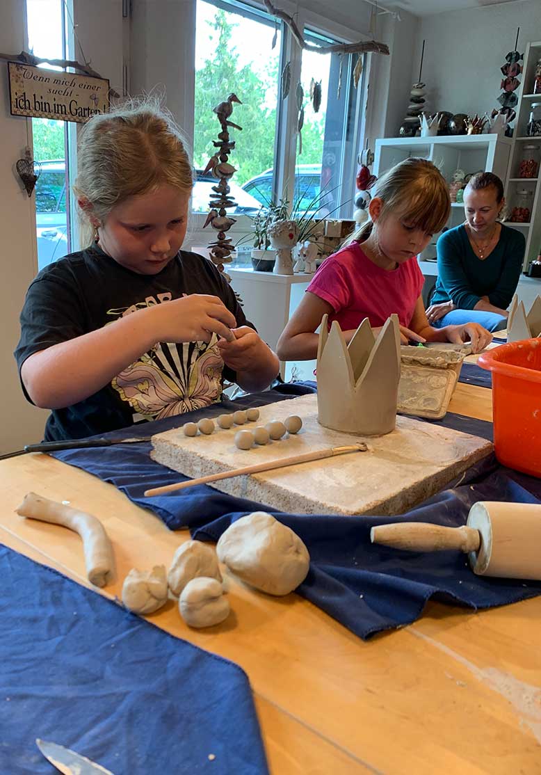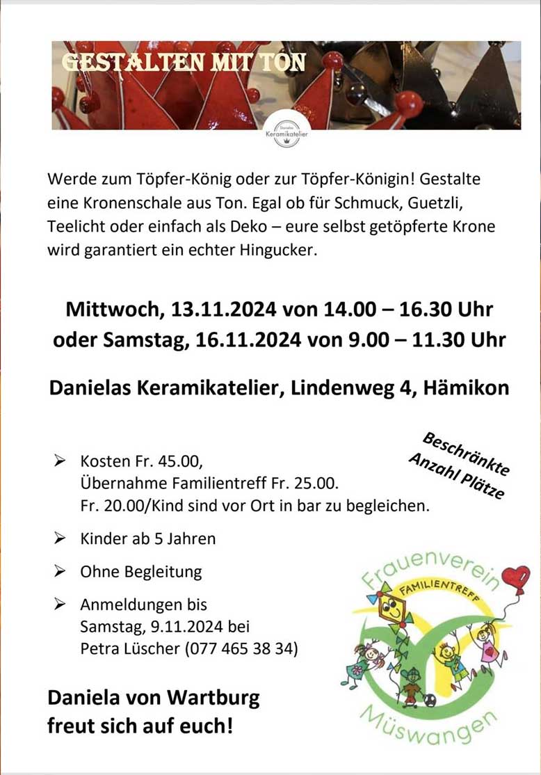 Der Familientreff Müswangen/Hämikon organisierte kreatives Töpfern in meinem Atelier. Viele Kinder kreierten Kronen für die Adventszeit.